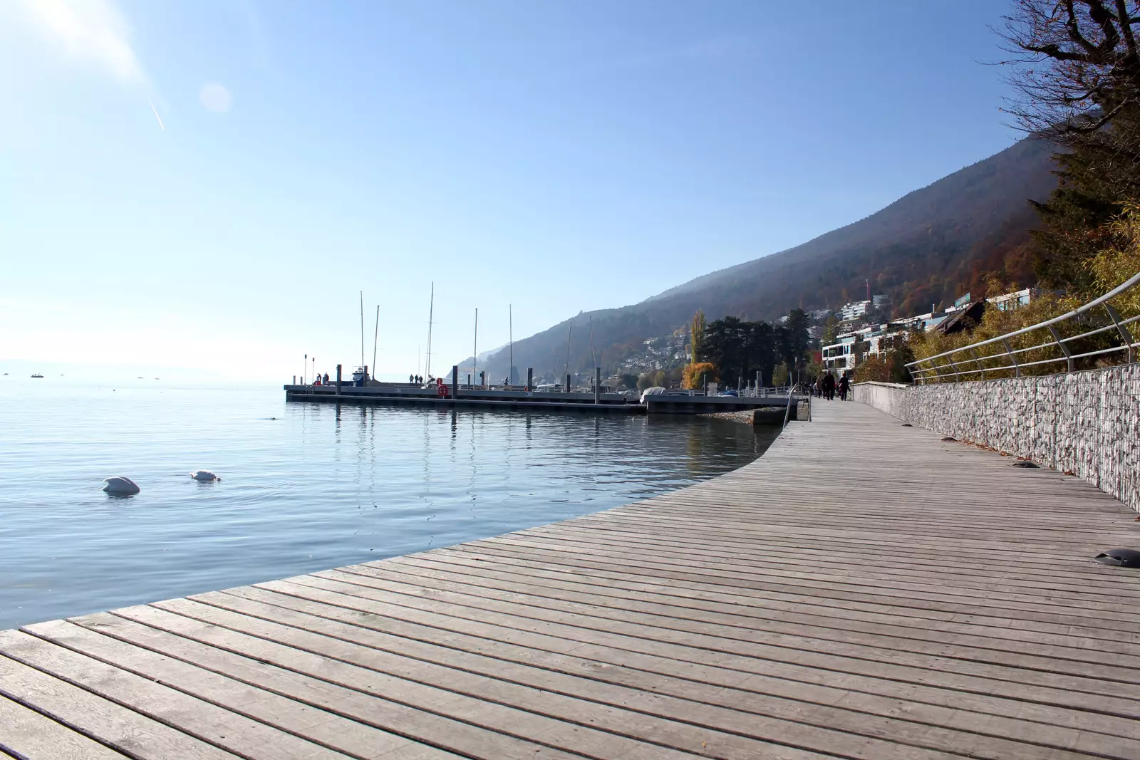 Aménagement d'une promenade en bois massif au bord du lac de Bienne.